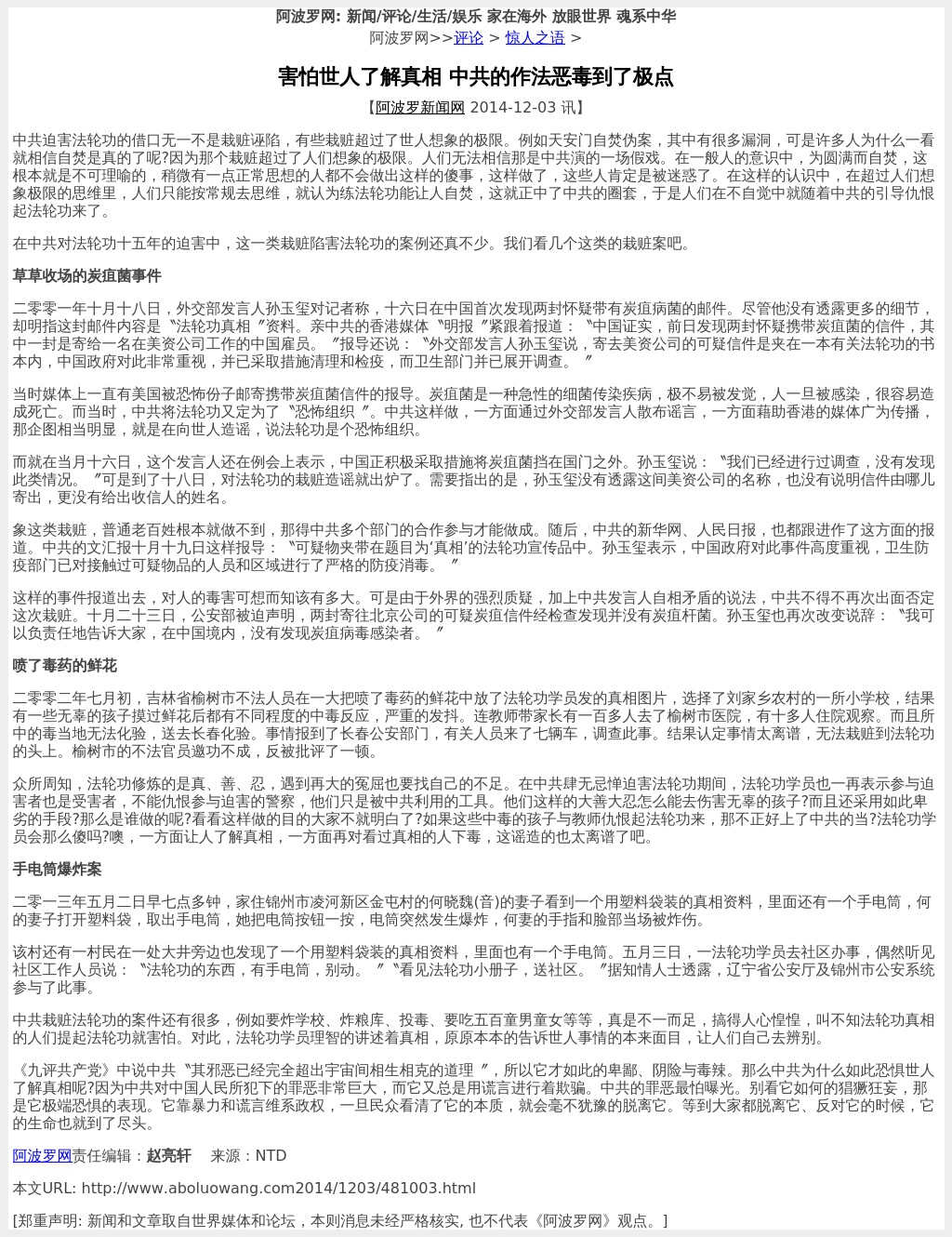 害怕世人了解真相 中共的作法恶毒到了极点