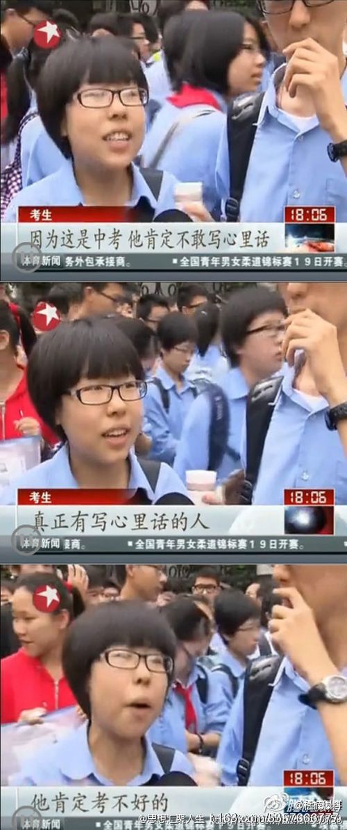 今年上海中考的作文�是《今天,我想��心��》。有一名�加中考的女生在接受媒����表示:「因��是中考,大家都不敢�心��,真正有�心��的人,他肯定考不好的。」不少�友表示�妹子�出了「真心�」。