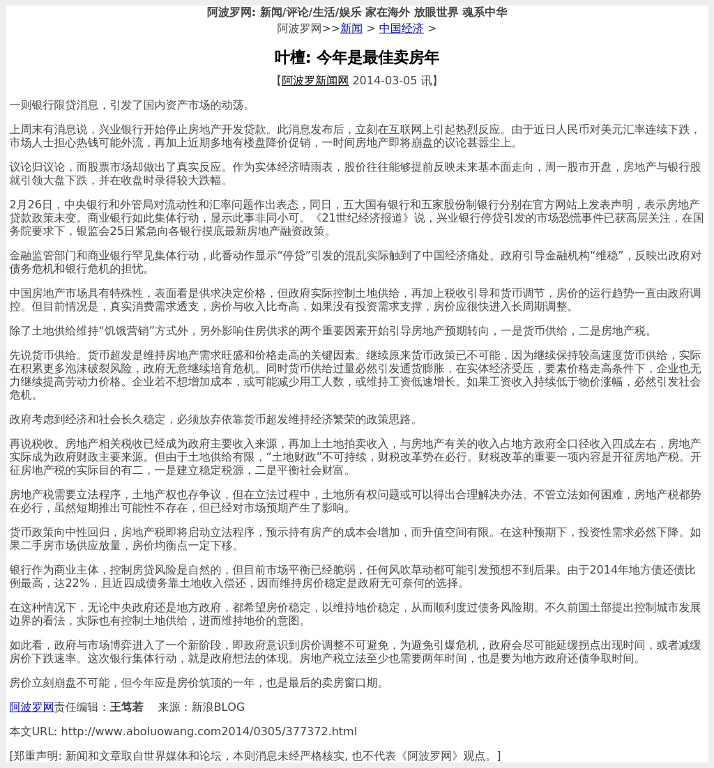 房价立刻崩盘不可能,但今年应是房价筑顶的一年,也是最后的卖房窗口期。