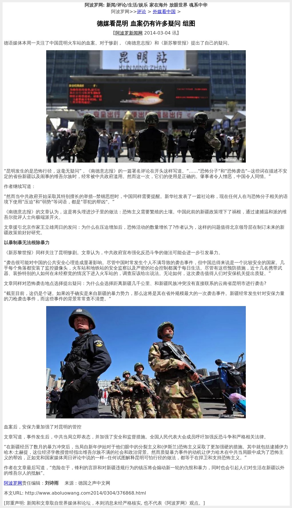 德媒看昆明 血案仍有许多疑问 组图