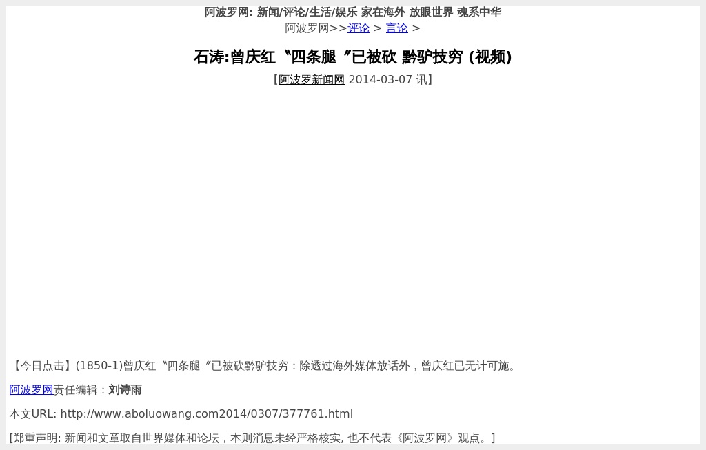 石涛:曾庆红�四条腿�已被砍 黔驴技穷 (视频)
