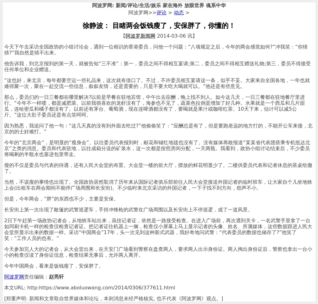 徐静波: 目睹两会饭钱瘦了,安保胖了,你懂的!