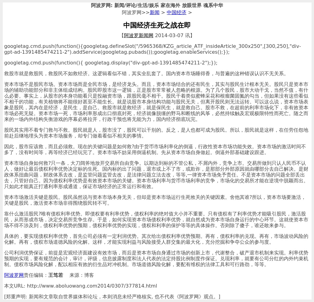 资本市场不是股民市场。资本市场而是全民市场,是经济龙头。而且,资本市场结合的还有民生,其实与股民生计根本无关。股民只是资本市场的辅助功能部分和非主体组成结构。股民即股市这一逻辑,正是股市常常被人忽略的根源。为了几个股民,股市大动干戈,当然不值,有什么必要。事实上,从股市的本身功能看只是投融资市场,跟股民毫不相干。股民干着类似蜜蜂采花和根瘤菌固氮的勾当,但如果没有这些看似不相干的功能,有关植物将不能很好甚至不能生长。就是说股市本身结构功能与股民无关,但离开股民则无法运转。可以这么说,资本市场表象是股民,其内在是经济,是民生,是自己。救股市就是救经济,就是保民生,就是救自己。股市不救,在超前的利率市场化下,非有效资本市场必死无疑。资本市场一死,市场利率形成出口彻底封死,经济就像脱缰的野马和断线的风筝,必然持续触及宏观极限特性而死亡。随之而来的一场内外结构失衡游戏的序幕必将拉开,行政干预也将无能为力,国内经济彻底玩完。